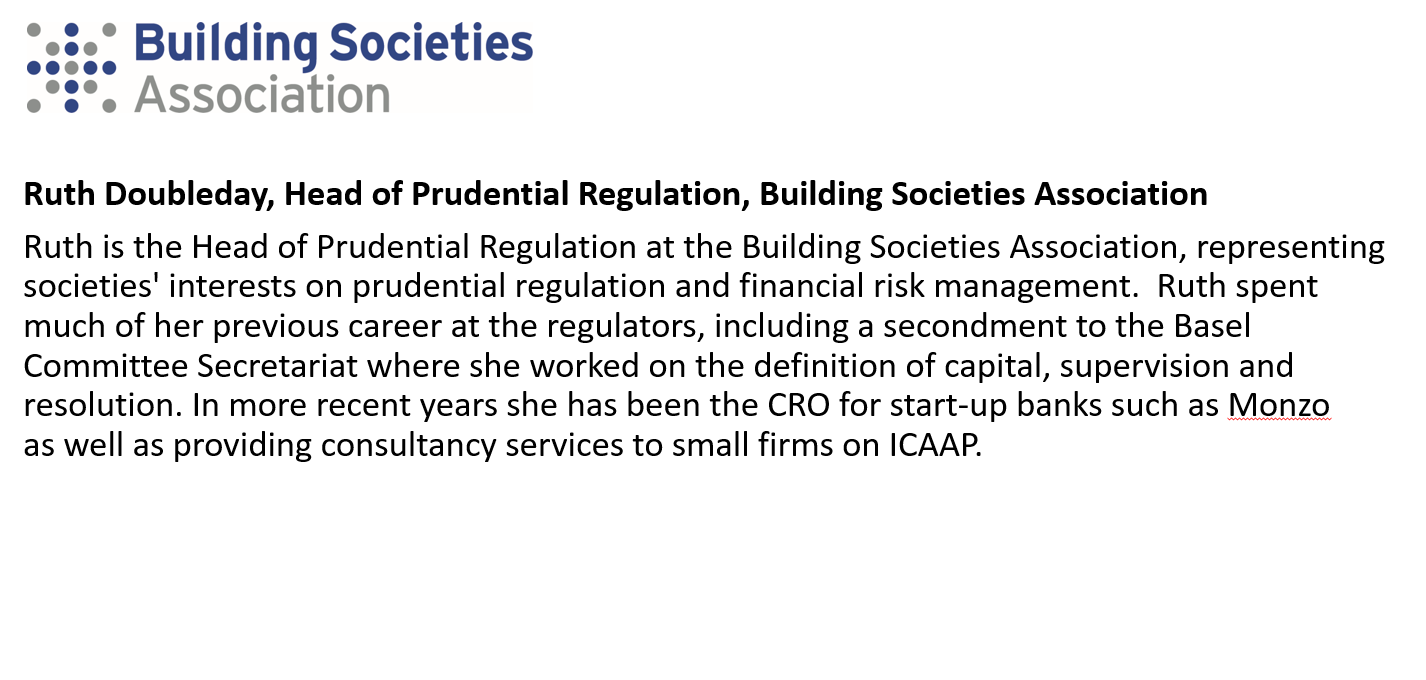 Chair: Ruth Doubleday, Head of Prudential Regulation, Building Societies Association (Biography)